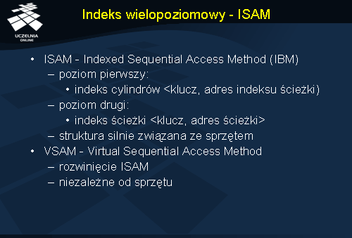 - indeks wielopoziomowy statyczny (ISAM),