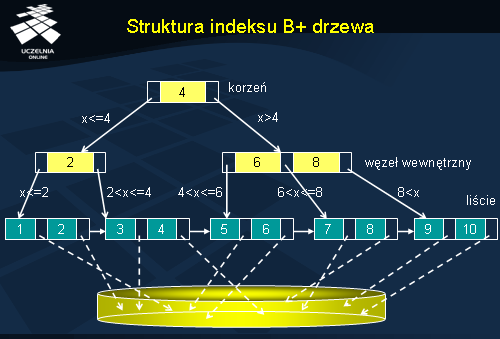 Oznacza to, że wartości klucza indeksowego są uporządkowane (od lewej - wartości najmniejsze do prawej - wartości największe).