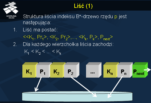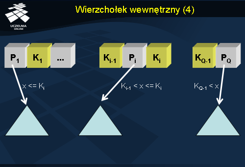 gdzie Q <= p; Pi jest wskaźnikiem do poddrzewa; Ki jest wartością klucza indeksu.