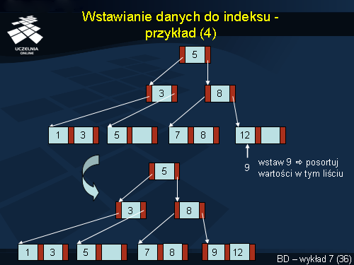 - algorytm wstawiania danych do indeksu B+-drzewo.