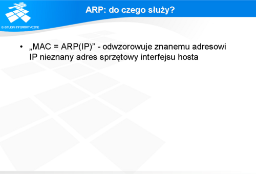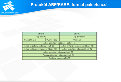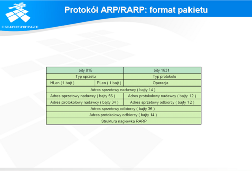Zadaniem protokołu ARP jest zatem odwzorowanie 32 bitowego adresu IP (w IPv4) w 48 bitowy adres sprzętowy.