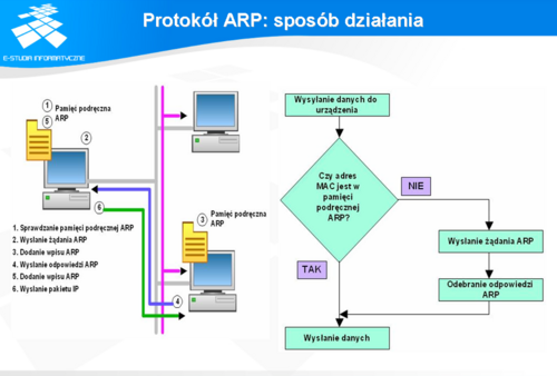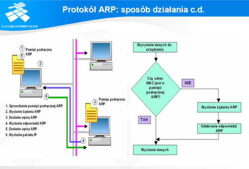 Adresy sprzętowy przechowywany jest w tablicy ARP, która jest swego rodzaju pamięcią podręczną. Przed wysłaniem ramki host sprawdza tablicę ARP, czy znajduje się już tam adres hosta docelowego. Jeśli jest już tam ten adres wpisany, to ramka jest wysyłana.