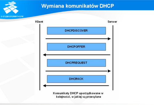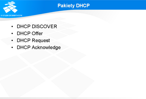 DHCP Offer - oferta DHCP DHCP Request - żądanie DHCP DHCP Acknowledge - odpowiedź na żądanie