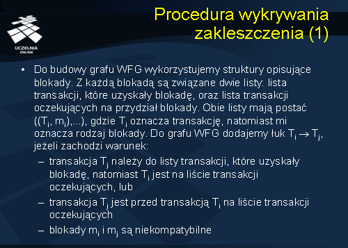 - wykrywanie i rozwiązywanie zakleszczenia,
