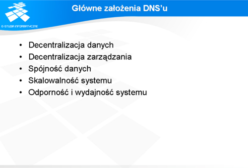 Przystępując do tworzenia nowego systemu przyjęto szereg założeń, których celem było uniknięcie wszystkich dotychczasowych ograniczeń. Najważniejszą cechą systemu nazw symbolicznych jest niewątpliwie hierarchiczna struktura danych, która pozwala zarówno na decentralizację danych, jak i na decentralizację zarządzania danymi. Zarządzanie danymi odbywa się w miejscu ich powstawania w ściśle określonym zakresie, co w naturalny sposób gwarantuje spójność systemu. W podobny, naturalny sposób osiągnięto wysoki stopień odporności i wydajności systemu wprowadzając dodatkowe mechanizmy powielania i buforowania danych, które w połączeniu z trybem pracy typu klient-serwer czynią system w pełni skalowalny.