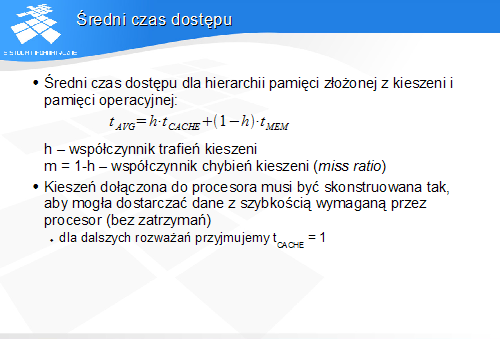 Średni czas dostępu dla hierarchii pamięci złożonej z kieszeni i pamięci operacyjnej:
