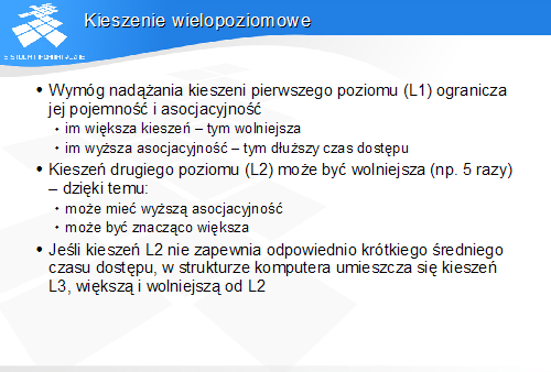 Kieszeń drugiego poziomu (L2) może być wolniejsza (np. 5 razy) - dzięki temu: