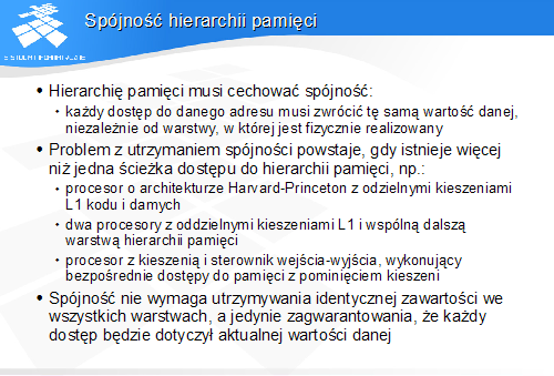 każdy dostęp do danego adresu musi zwrócić tę samą wartość danej, niezależnie od warstwy, w której jest fizycznie realizowany