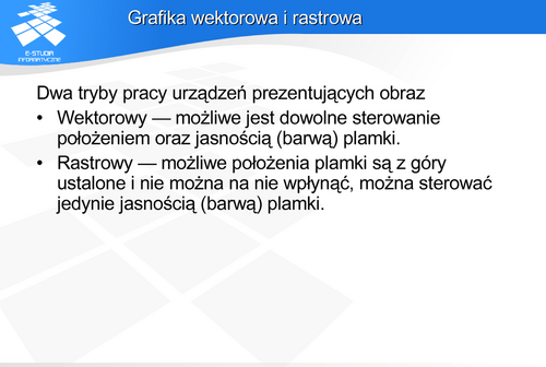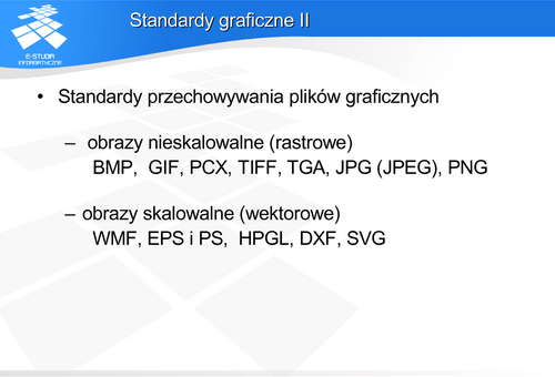 Do pierwszej grupy (rastrowej) miedzy innymi można zaliczyć: