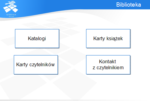 W celu lepszego przedstawienia idei wzorców, wybrane wzorce zostaną omówione na przykładzie projektu oprogramowania dla biblioteki. System taki składa się z rozmaitych modułów i realizuje różne funkcje, które nie są interesujące z punktu widzenia jakości projektu. Dlatego dla potrzeb przykładu zostanie on ograniczony do czterech odułów, spośród których opisane zostaną wybrane problemy i sposoby ich rozwiązania w oparciu o wzorce.