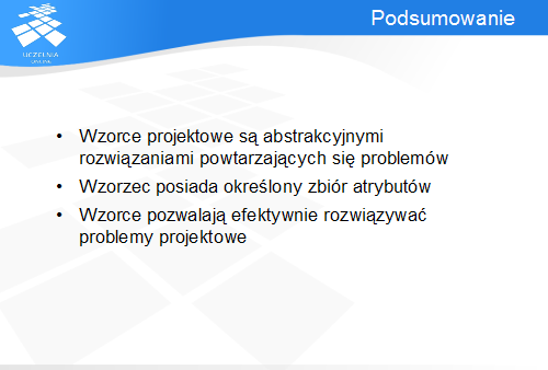 Taki wzorzec jest gotowym schematem postępowania, który można zastosować w wielu sytuacjach, łącząc go także z innymi wzorcami.